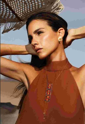 A coleção transforma em joias ícones que fazem parte da memória afetiva e da identidade alagoana, como o lendário Gogó da Ema, o Farol da Ponta Verde e o tradicional bordado Filé, reconhecido como patrimônio imaterial cultural do estado. Ao incorporar o Filé na joalheria, Fabrícia reafirma a potência das tradições artesanais e sua capacidade de dialogar com a estética contemporânea.