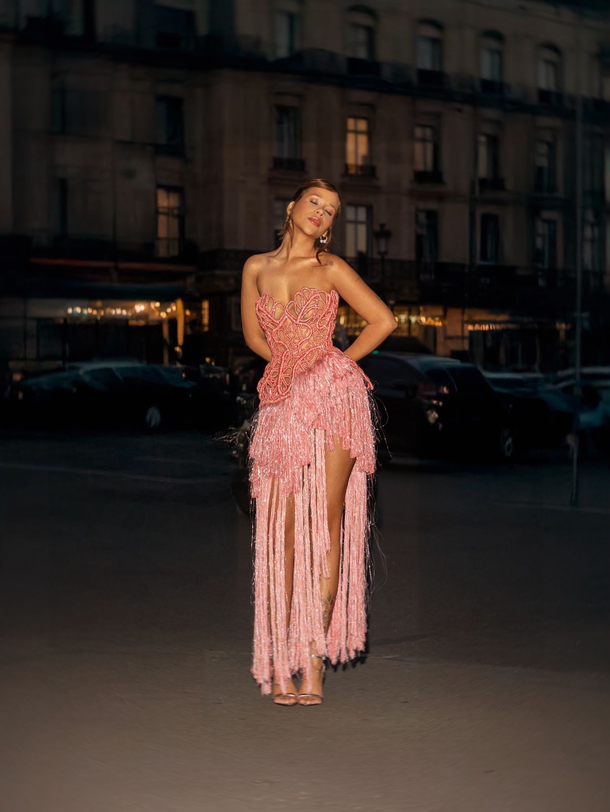 Laura Brito prestigia o Le Défilé L’Oréal Paris com vestido exclusivo inspirado em mariposa