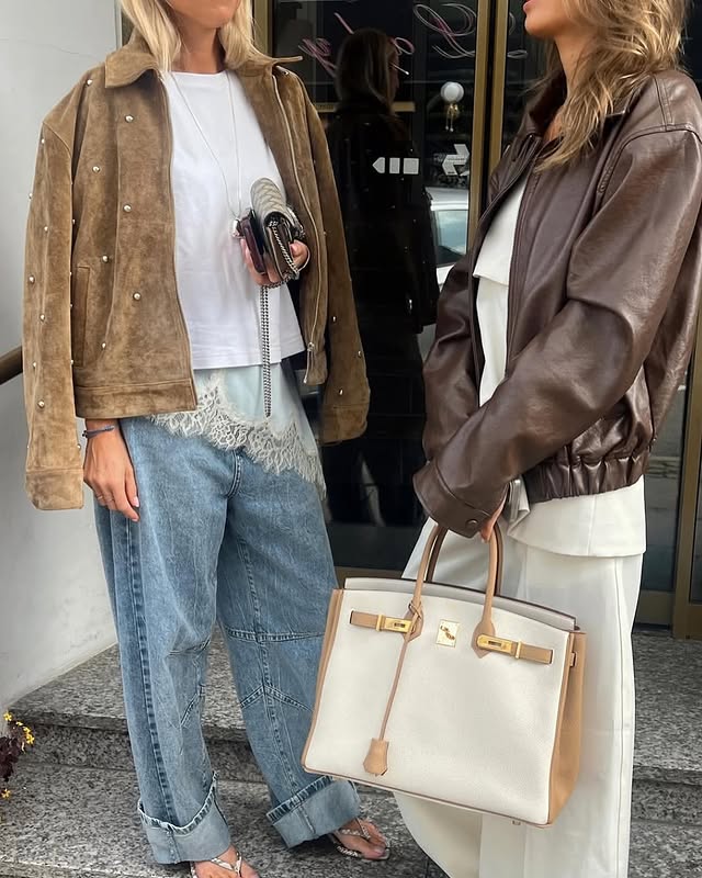 Em dias frios, a jaqueta oversized entra em cena. Jogada sobre um look com renda aparente, ela cria uma composição poderosa e cheia de presença, equilibrando peso e delicadeza de um jeito super fashionista.