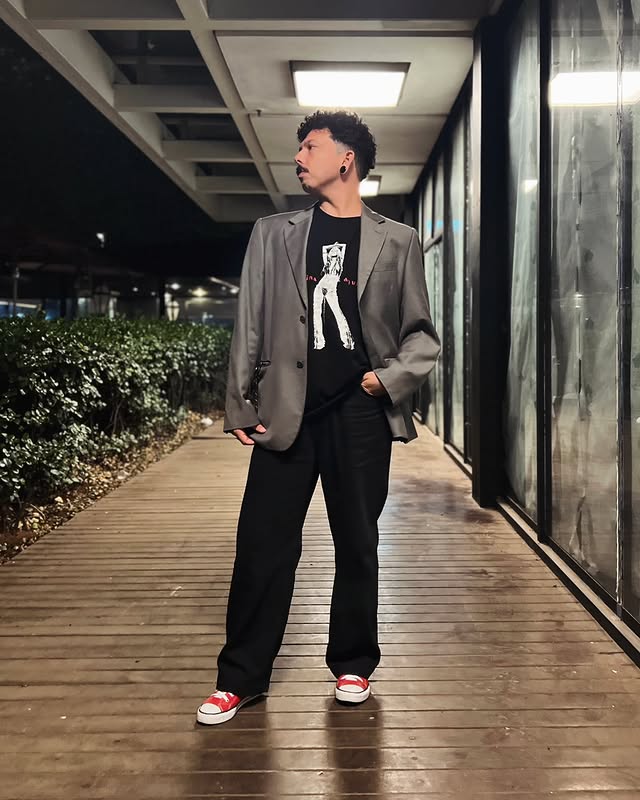 Que tal um blazer oversized ou estruturado? Ele harmoniza muito bem com jeans ou calças retas, equilibrando desde a formalidade a uma festinha incrível. Nesse caso, o All Star adiciona leveza e personalidade ao look, tornando-o confortável e atual.