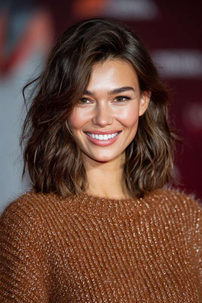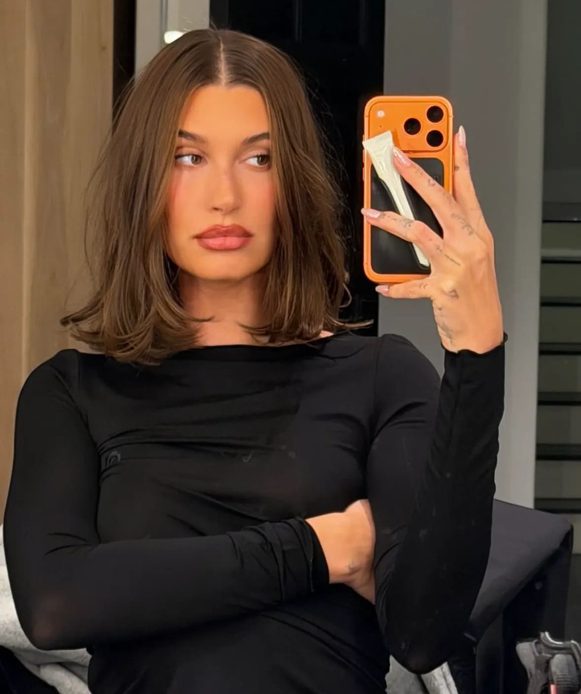 Hailey adotou em 2023 um long bob curto, na altura do pescoço. Porém, para 2025, ela aderiu ao corte bob médio na altura do ombro. Este corte é atemporal, provando que o bob continua a ser o corte mais elegante da moda.