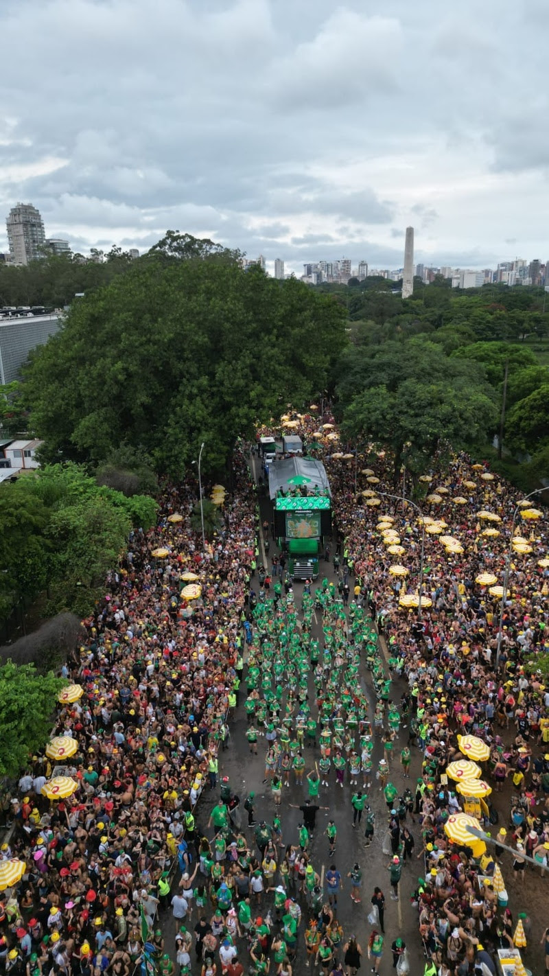 Na sequência, o Monobloco encerrou o domingo de pré-Carnaval com um desfile vibrante e inclusivo. Sob comando do maestro Celso Alvim, o bloco percorreu o entorno do Ibirapuera em um cortejo que reuniu samba, pagode, forró, música da Bahia e canções autorais do grupo, como Arrastão da Alegria e Funk do Monobloco.