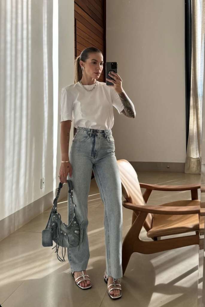 Para adotar o visual da jornalista, o segredo está no equilíbrio das proporções. Você pode combinar a calça de cintura alta com camisaria para um look sofisticado. Por outro lado, o uso com t-shirts básicas cria um ar despojado e moderno. Com certeza, o “efeito Ana Paula” mostra que o jeans clássico é a maior potência da temporada. Se você busca um visual clássico e elegante para 2026, a calça jeans reta é a escolha perfeita.