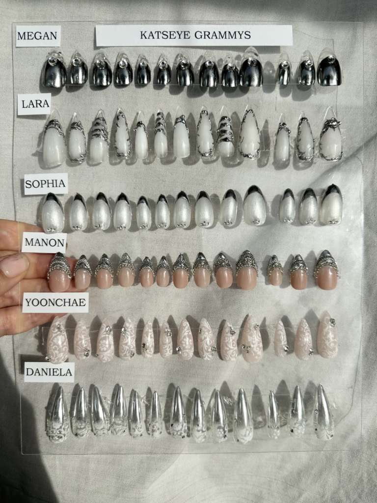 A estética das unhas do grupo transita entre o “Dark Coquette” e o futurismo, provando que o preto e o prata são a dupla dinâmica da temporada. Cada escolha revela como é possível imprimir personalidade, através do design das unhas, transformando o autocuidado em uma declaração de estilo poderosa.