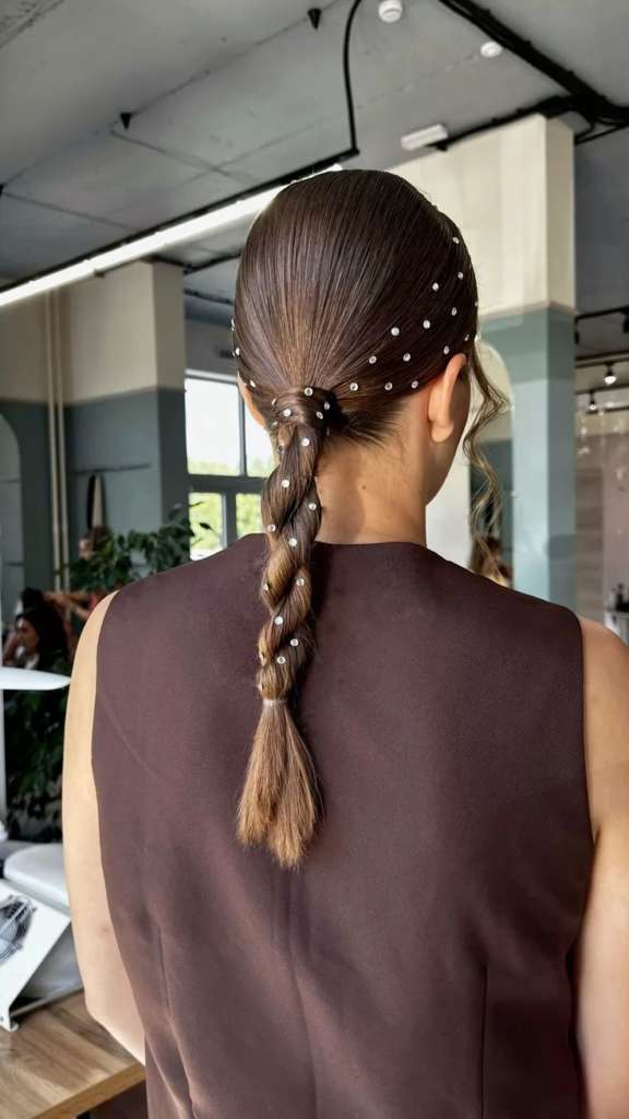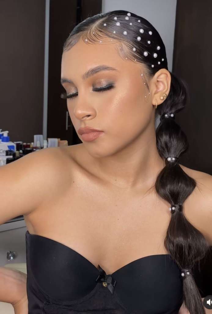 Para quem busca praticidade, o estilo bubble hair com elásticos neutros e coloridos é a escolha ideal. Além de prático, ele se tornou o favorito do momento por sua versatilidade absoluta. Você pode utilizar gel para alinhar perfeitamente os fios e, em seguida, aplicar adesivos ou adereços de sua escolha. Essa combinação transforma o penteado em um visual totalmente elegante e clean.