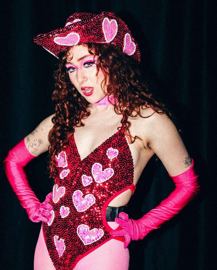 Um acessório indispensável para o seu visual é o chapéu pois a artista utiliza essa peça para coroar suas produções mais icônicas. Chappell Roan, adora a arte drag queen e por isso busca inspiração nessas artistas para montar looks dramáticos e maximalistas.