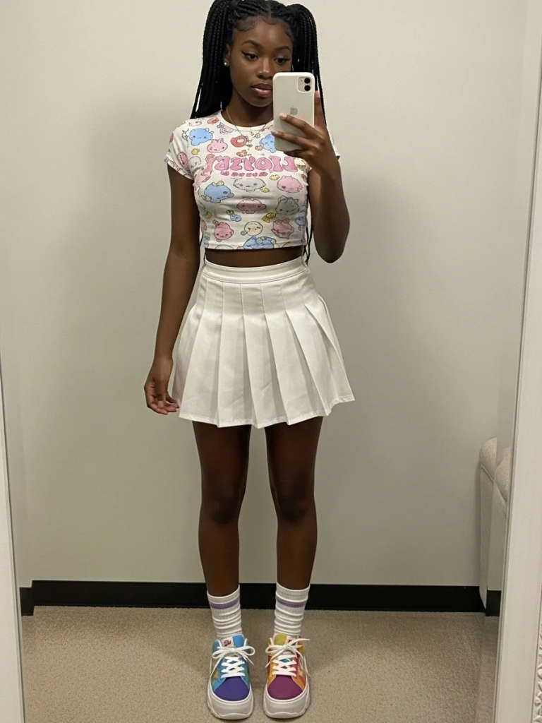 Para uma pegada mais streetwear e confortável, as baby tees (camisetas bem ajustadas ao corpo, geralmente com frases ou gráficos divertidos), são perfeitas. Combine com jeans de lavagem clara ou uma calça cargo acetinada. Adicione um cinto de strass para trazer o brilho característico da cantora.