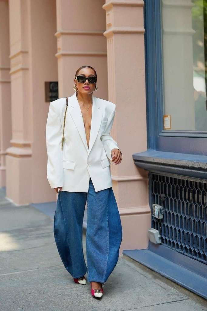 Essa versatilidade permite a combinação ideal com as bermudas de alfaiataria, que ganham um acabamento sofisticado ao serem usadas com o mule, sem o risco de encurtar o corpo. Já para os dias de meia-estação, a união do jeans reto com o trench coat, traz o equilíbrio perfeito para aquele visual “saí assim e estou incrível”, provando que a praticidade pode, sim, ser extremamente luxuosa.