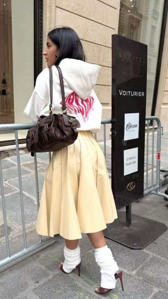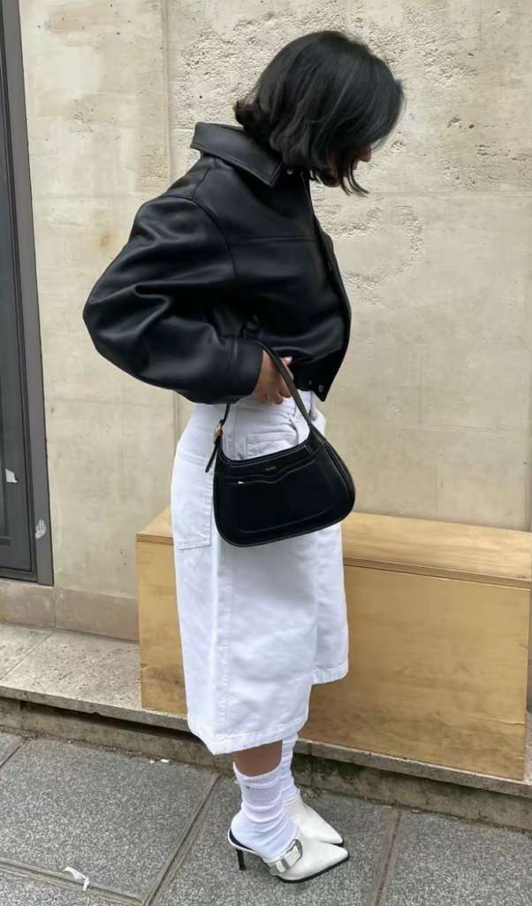 Quer um visual digno de street style das semanas de moda? Aposte na sobreposição. O mule ganha destaque quando usado com meias brancas ou meias 3/4 coloridas. Esse contraste entre o clássico do sapato e o lúdico do acessório é o que define o estilo criativo para quem gosta de sair do óbvio. É o truque perfeito para transitar entre as estações com personalidade.
