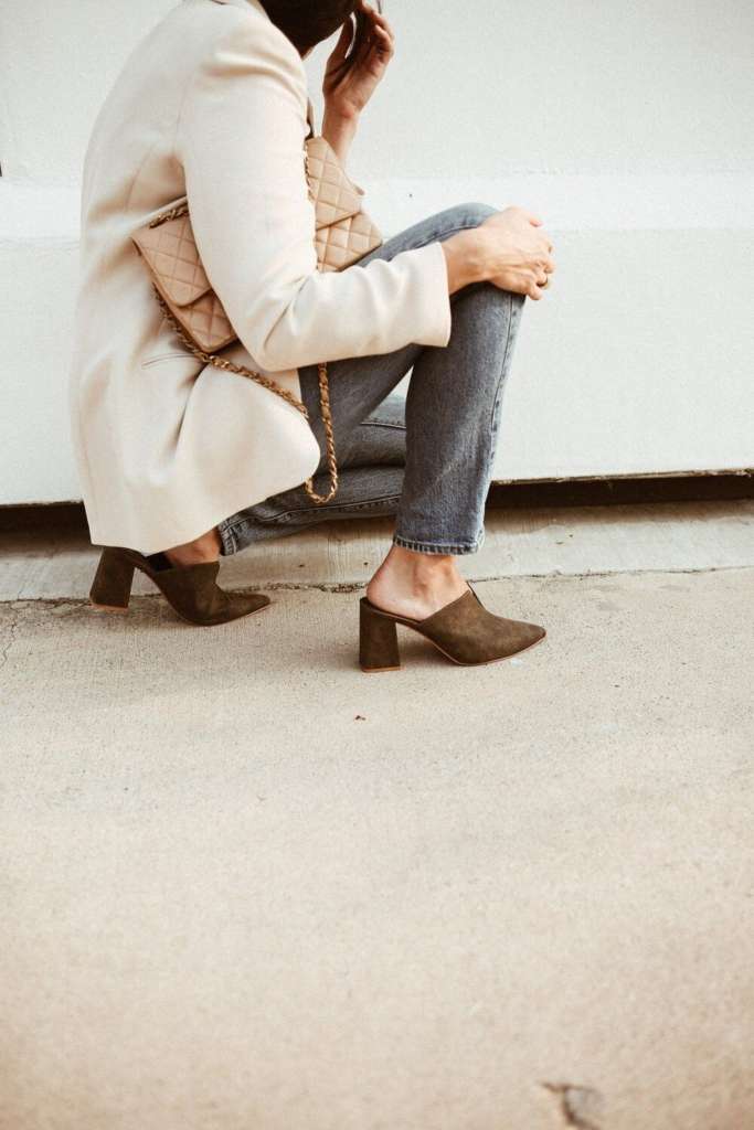 Para o ambiente de trabalho, a aposta migra para o mule de salto bloco em couro ou camurça. Os tons terrosos, como marrom, cacau ou chocolate, são o novo preto de 2026. Além de ser uma paleta completamente versátil, esses tons possuem o poder de transformar qualquer peça básica em um visual de impacto imediato, elevando até mesmo o jeans mais simples.