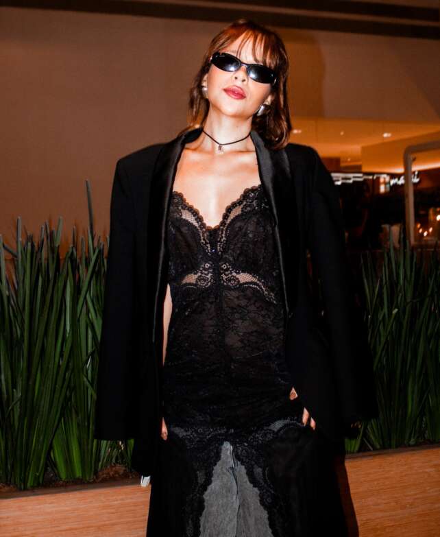 Convidada especial, a artista Halessia prestigiou o desfile na ‘Fila A’ e usou vestido assinado pela Normando.