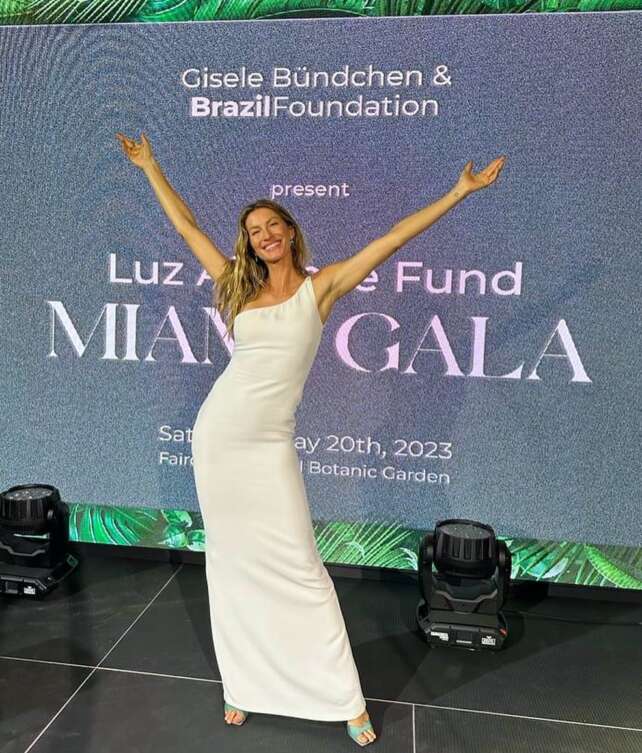 A anfitriã da noite, Gisele Bündchen desfilou um deslumbrante look Stella McCartney branco, remodelado exclusivamente para a ocasião.