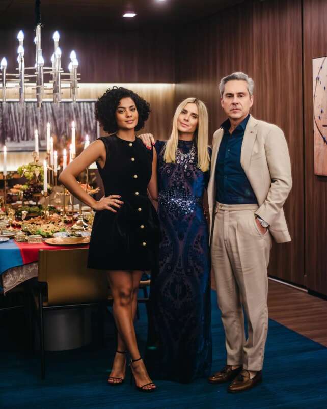 Leila, personagem de Carolina Dieckmann em Vale Tudo, apareceu deslumbrante em um vestido sob medida assinado por Lethicia Bronstein.