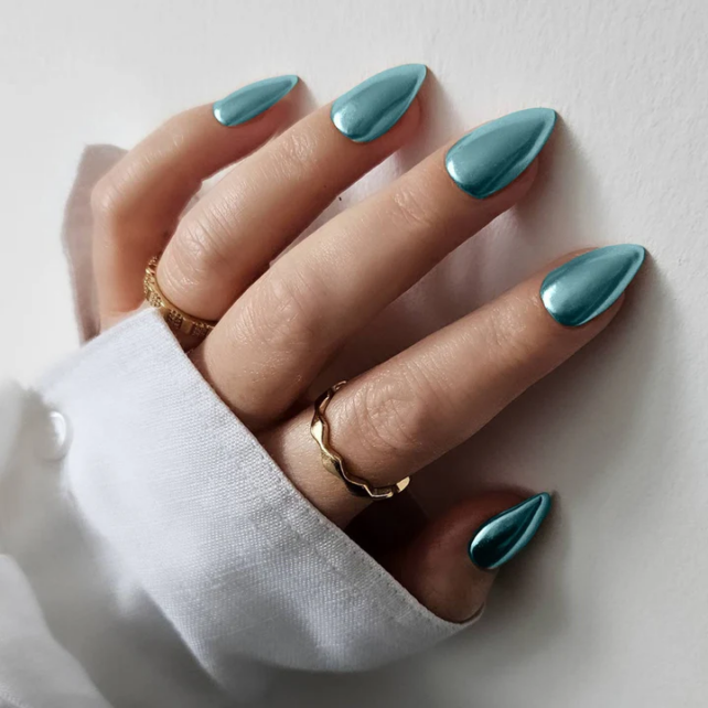 De Dua Lipa, Kylie Jenner, Zendaya e Lizzo, confira as celebridades que estão bombando com as unhas cromadas azuis.